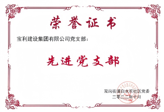 中共寶利建設集團有限公司榮獲“先進黨支部”